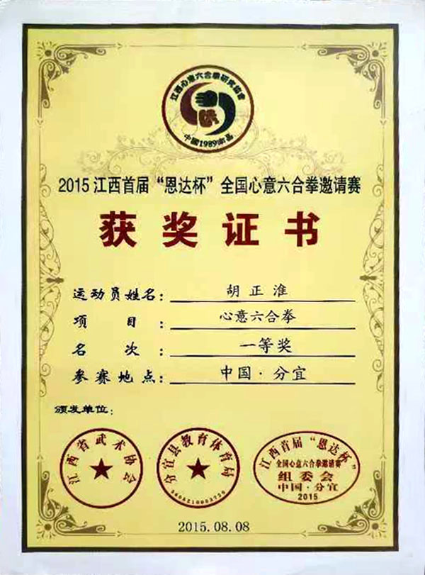 胡正淮,安徽蚌埠人,1946年生。自幼喜爱武术,于1962年5月正式拜入恩师李文彪门下,学习心意六合拳至今。曾经多次参加省内外武术大赛并获奖。